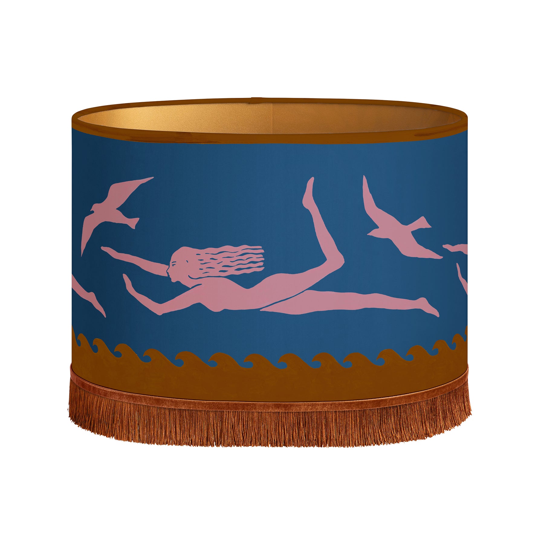 Elevate your interior with our statement lampshades, designed to stand out in any space. Thalassa is a hand painted reminder to take your vitamin sea and enjoy a speedy front crawl every now and then. Choose from a variety of size and frame options, including round and oval shapes, and frames compatible with either European or American lamp bases.