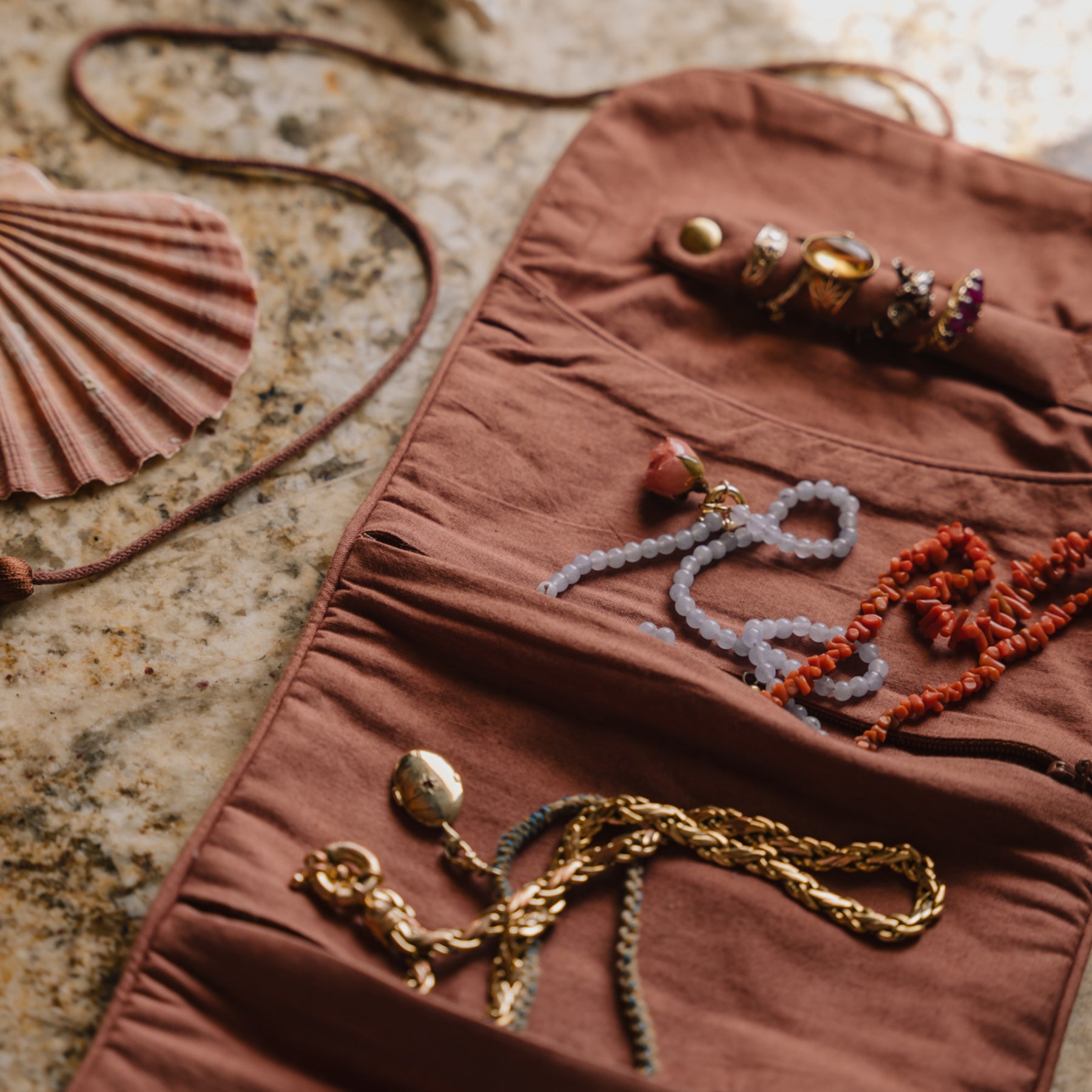 Crafted with care from organic cotton and linen, it’s as sustainable as it is sophisticated. Designed to protect your favorite jewelry while keeping everything perfectly in place, it’s a must-have for travelers and treasure-lovers alike.
