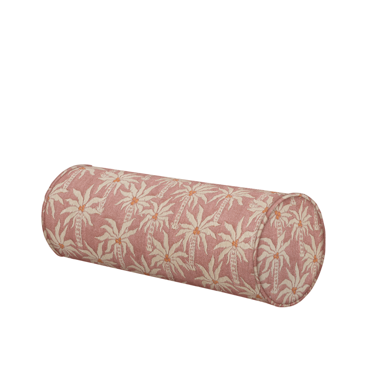 Bolster pillow in pink and beige with botanical palm pattern, 45x15 cm decorative cushion