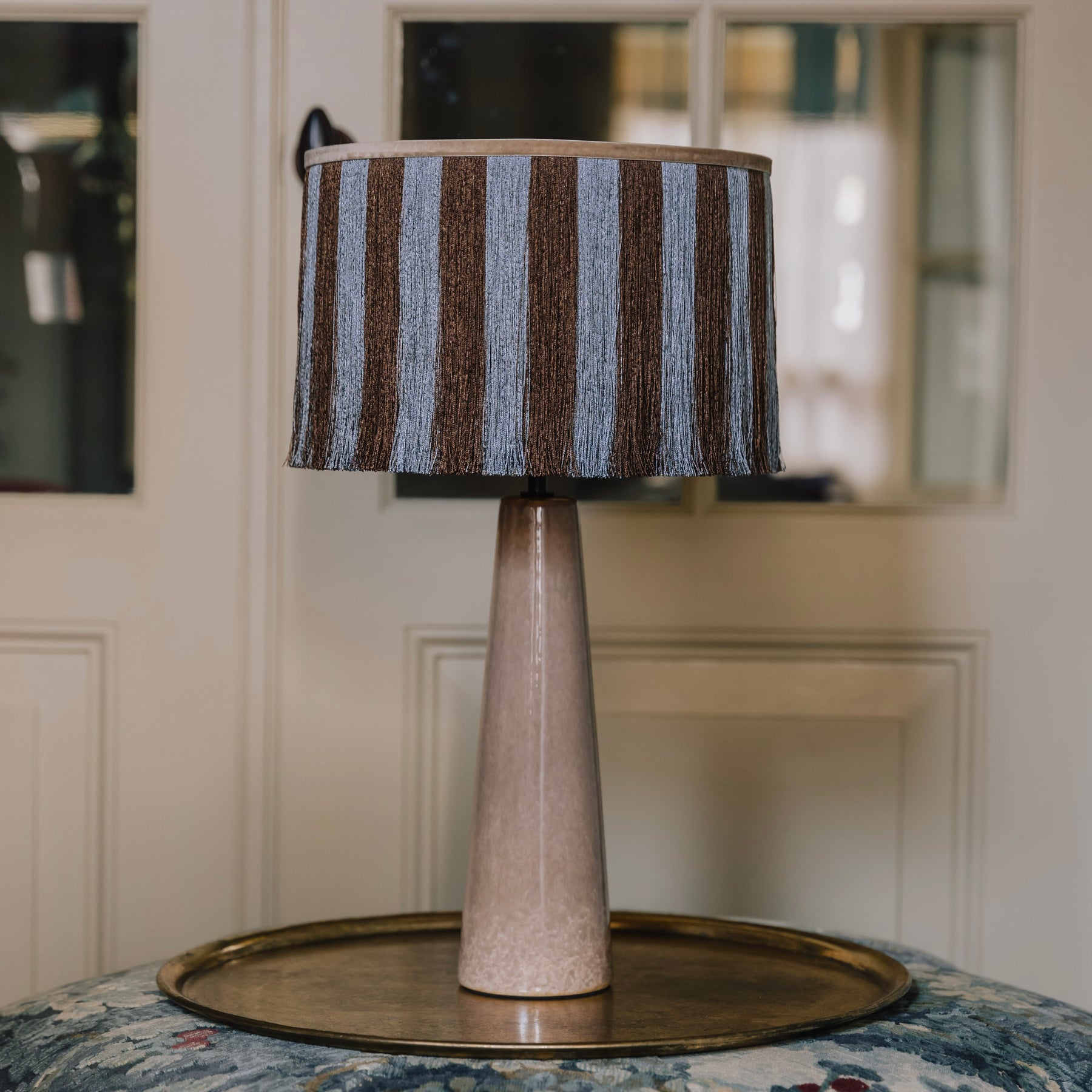 Jackies breite Streifen erinnern an die unbeschwerten Sommer der 1970er Jahre, als Strände von bunten Sonnenschirmen und endlosem Licht geprägt waren. Veredelt mit verlängerten Fransen verleiht dieses Design Struktur und Bewegung, ohne seinen nostalgischen Charakter zu verlieren.