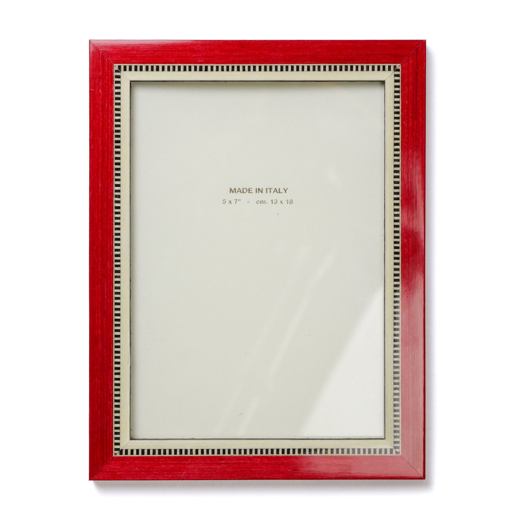 Ines is defined by her rich red tones and clean geometric border. The bold ruby finish is framed by fine black and ivory inlay details, creating a structured and elegant look with a classic and unique character. A timeless design piece that gives your most cherished memories a place in your home.