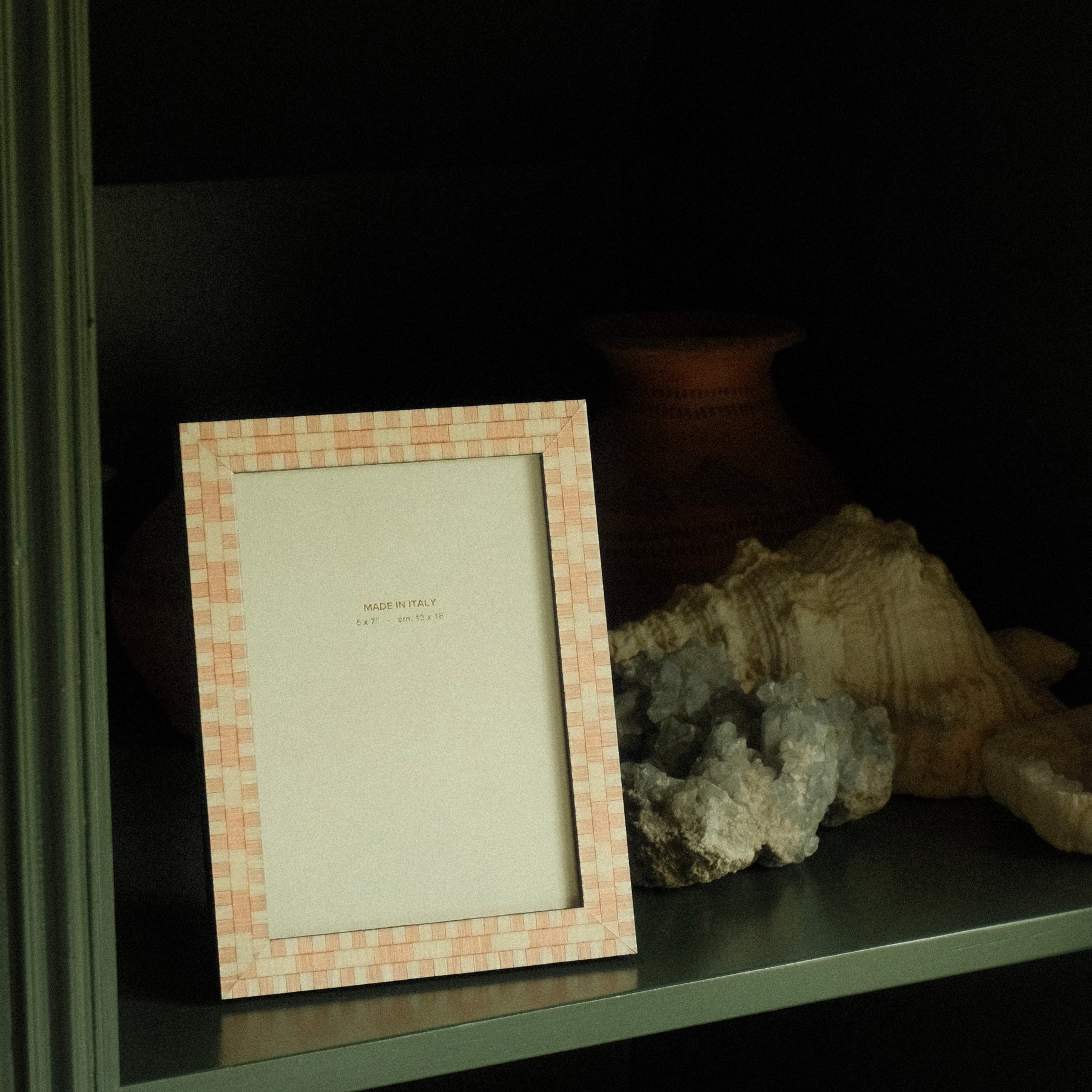 Each frame is handcrafted in Italy using the traditional marquetry technique. With this technique, small pieces of wood are carefully cut and placed together to create a unique and refined pattern. This detailed process gives every frame its own character, making each piece truly one of a kind. Known for its precision, artistry, and timeless elegance, marquetry adds a distinctive and luxurious finish to every piece. Finished with a high-gloss coating that enhances the colours and gives each frame an elegant shine. Designed for freestanding use only.