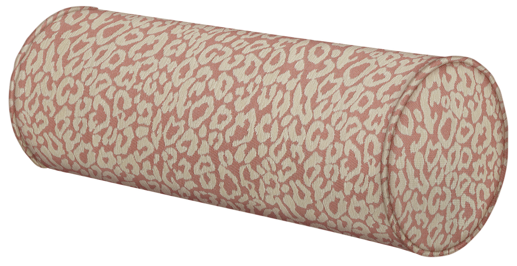 Bolster pillow in pink and beige with animal leopard pattern, 45x15 cm decorative cushion