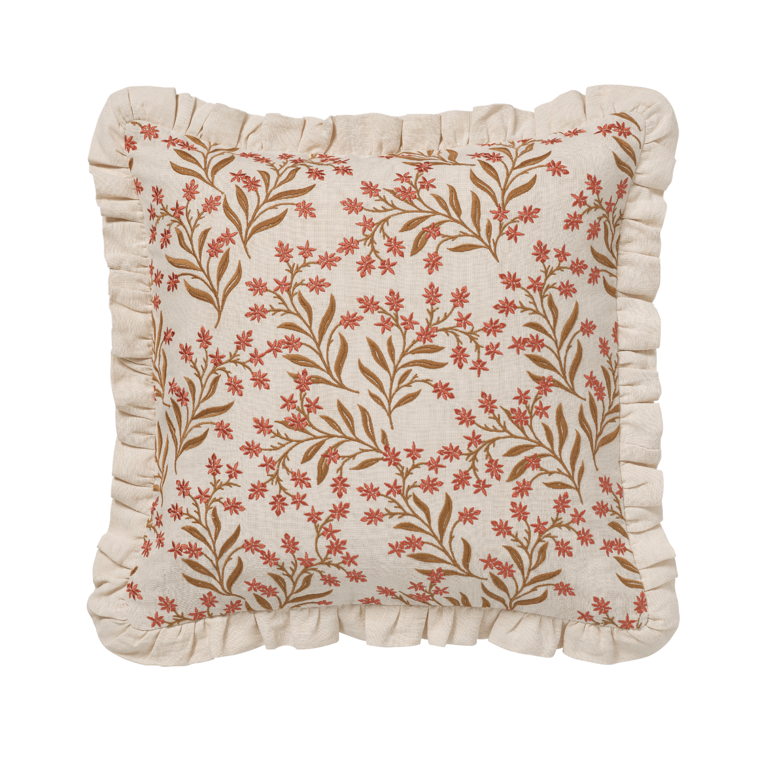 Give your interior a boost with this decorative pillow. Audrey's intricately embroidered design bursts with the vibrant hues of lush blooms and the whimsical charm of a floral paradise.