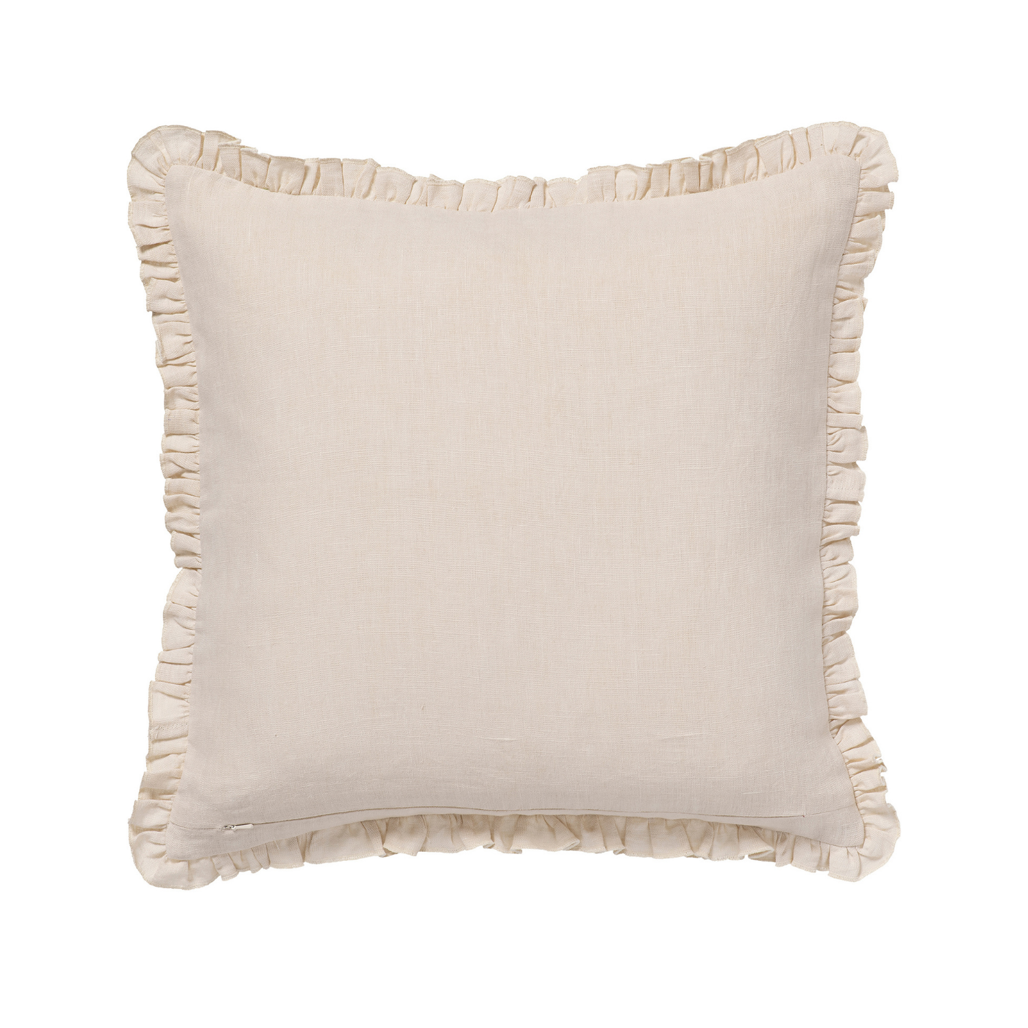 This cushion cover, crafted from 100% linen, features a custom-woven fabric for a soft, luxurious feel. Linen is a natural and renewable resource, making it an environmentally friendly choice for your home decor. The indoor filling is made from recycled down and feathers.