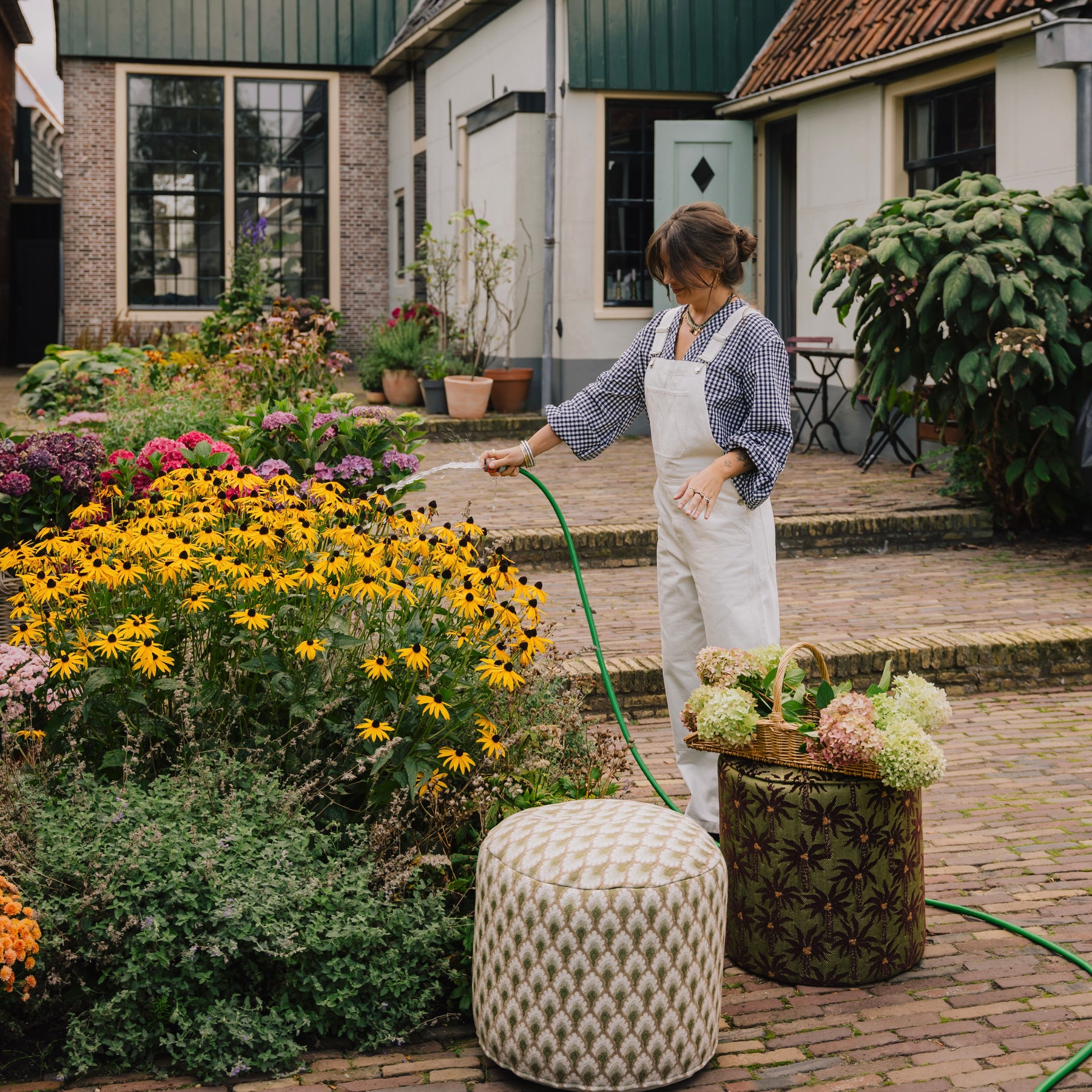 Bekleed met onze kenmerkende meubelstof Laura. Laura’s palmmotief brengt een ontspannen, zonovergoten elegantie in het interieur. Een subtiele herinnering aan warme dagen, slow living en een vleugje escapisme. De print geeft diepte en expressie en laat zich gemakkelijk combineren met zowel rustige als meer uitgesproken interieurs.